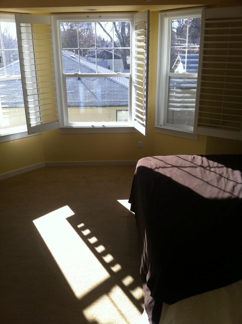 Solar gain at work in MMM’s room. Shutters open in day, closed at night.