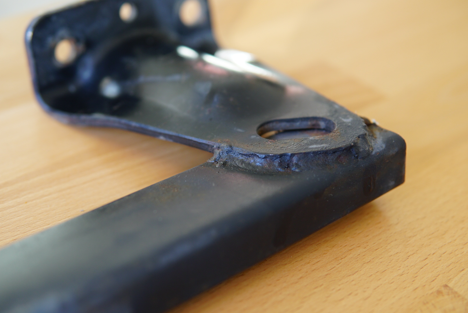 Here’s the tow hook, welded to a piece of 1×2 rectangular steel.