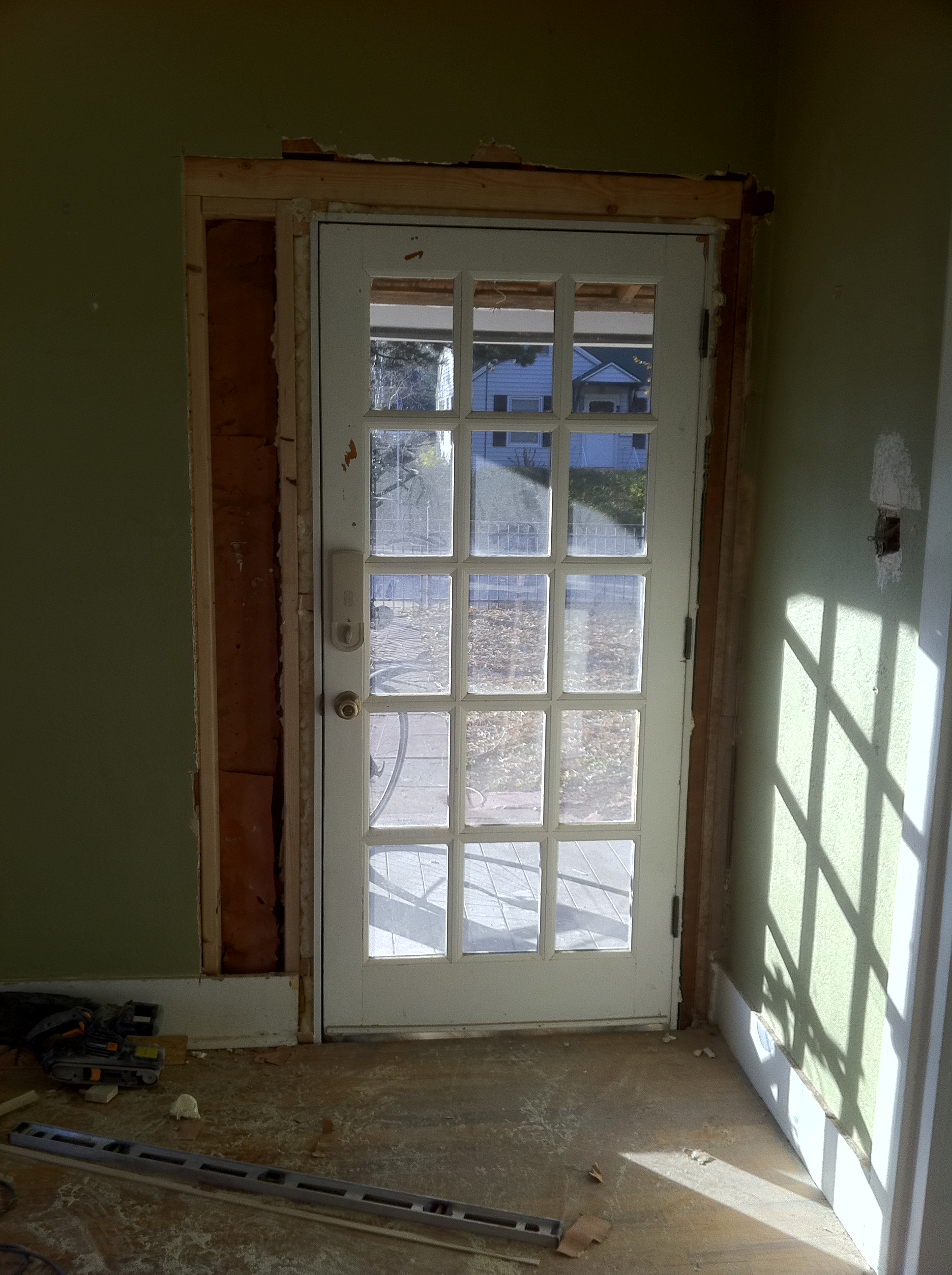 I also added a wider front door, and rebuilt one doorway to the bathroom and added a second doorway on the other side, adding bathroom accessibility from both bedrooms, and also creating a “circle” in the house where you can get to any room from either direction. Kids love this feature for running around, and it’s comfortable for adults too, making getting around the house more natural and efficient since you can pick either of two directions.