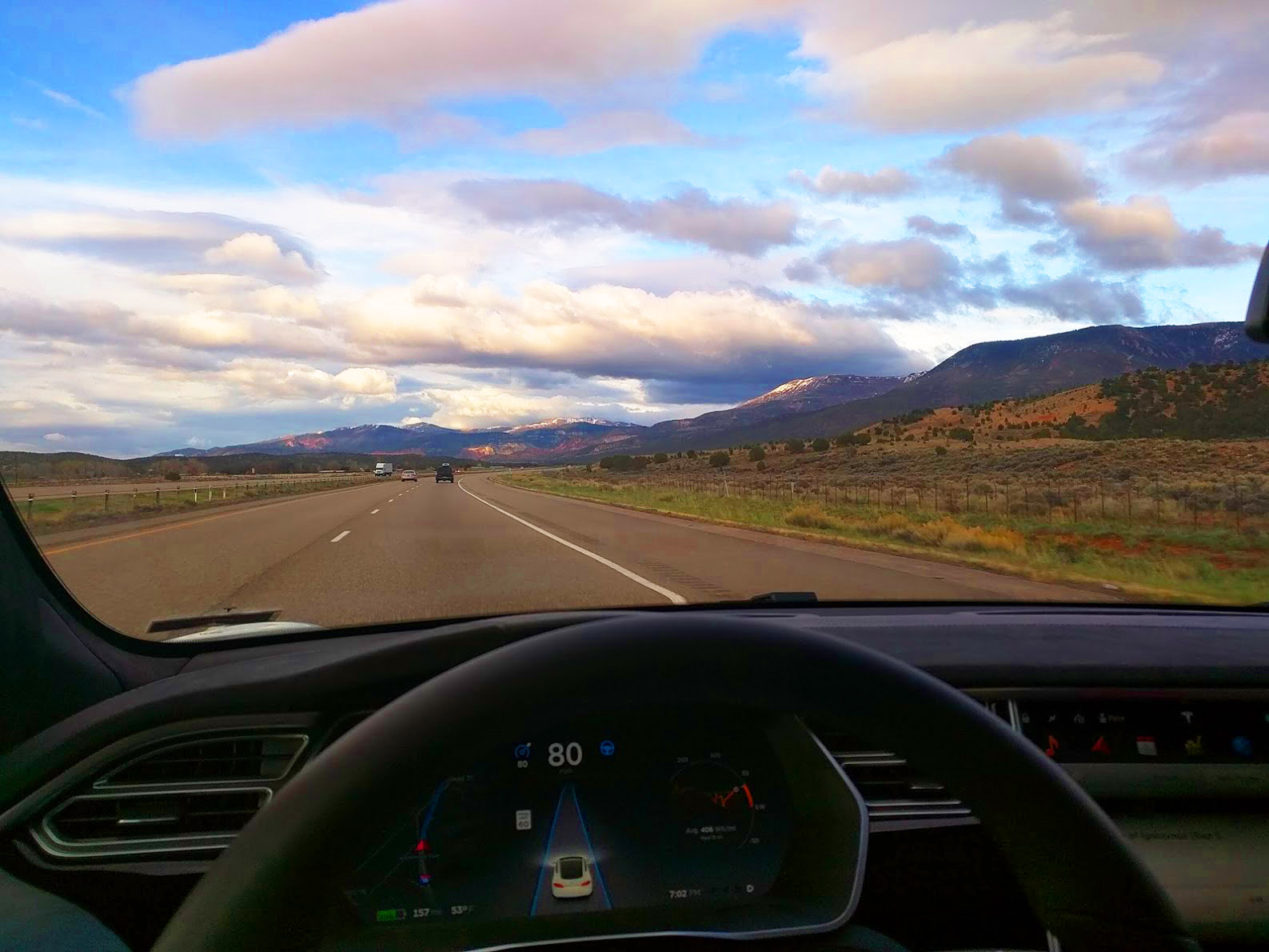 It already works pretty darned well from what I’ve seen. Although I enjoyed the effortless crossing of 600 miles of inland deserts and mountain ranges, the true joy came as we descended into the Los Angeles basin just in time for a Wednesday rush hour. With nearly perfect accuracy, Autopilot was able to glide me along through the endless traffic jams while I sat in the car’s open, airy, and incredibly quiet interior, streaming music from my phone into the car’s high-end audio system via Bluetooth, and enjoying conversation with my travel companions. It’s more like sitting in a rolling leather-appointed coffee shop than the buzzing, stressful driving experience we all grew up with. The windshield wipers detected a light rain and wiped it away as needed, and the headlights took care of illumination whenever they deemed it to be a little dark.