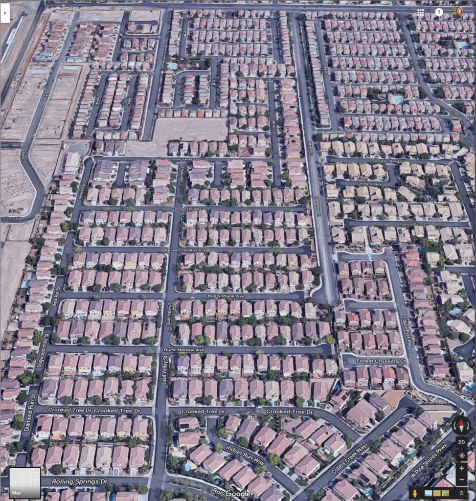 The latest and most distant Las Vegas Suburbs – still expanding (actual screenshot from Google Maps)