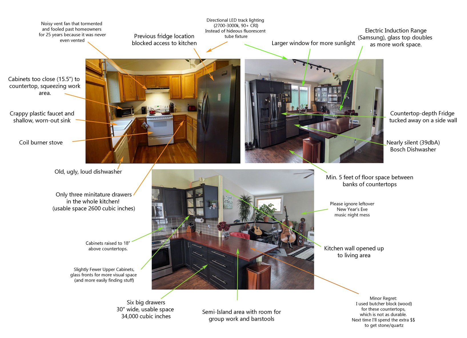So in this article, I’m going to whisk you through a high-speed tour of the main steps of rebuilding a kitchen, focusing on the things that make the biggest difference in function, cost, and difficulty – in other words, the things I wish I knew 23 years ago when I started working on my first kitchen.
